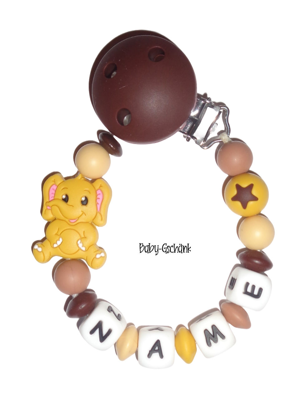 Silikonnuggikette mit Elefant und Sternenperle